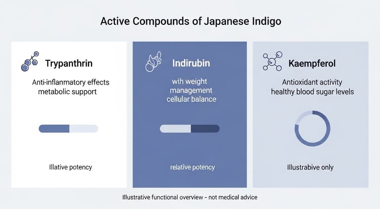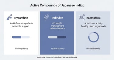 🌿 Active Compounds in Japanese Indigo Leaves: Scientific Summary