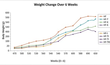 Food intake was similar across groups, meaning differences were due to indigo compounds