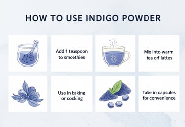 Indigo’s beneficial compounds are heat-stable, so it can be used in cooking.